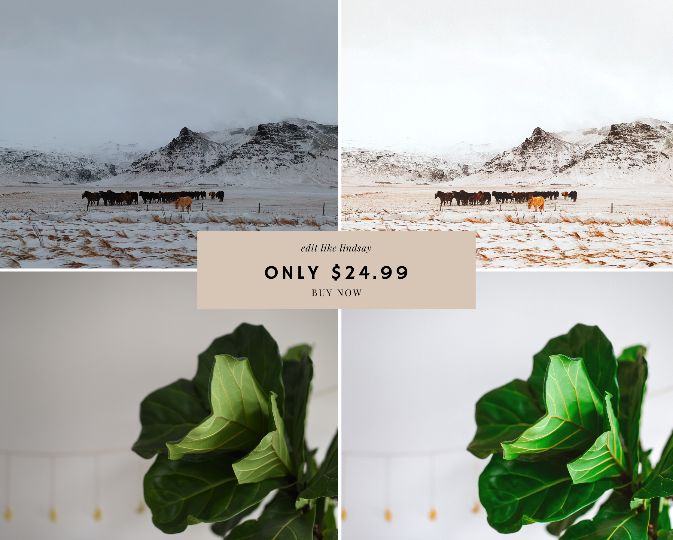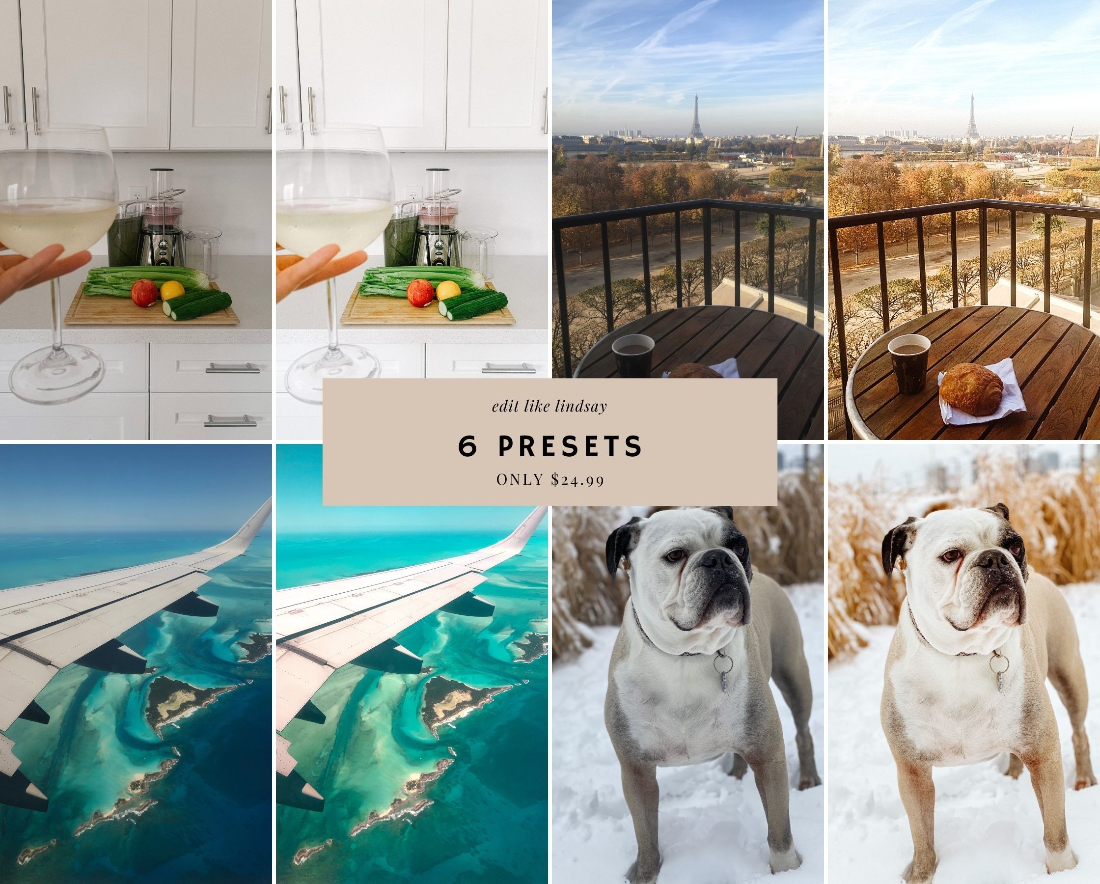 These presets are all named after one of my girlfriends. Each preset has it’s own unique features, just like these special women. Designed with their own personal style and aesthetic in mind, I hope Robyn, Nova, Leslie, Katie, Lexus and Nina all inspire you like they inspire me.